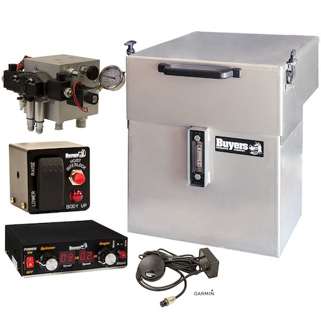- Proportional spreader operation with compact 2-function or 3-function (auger-conveyor, spinner and pre-wet included with GPS versions) controls. 11 GPM, 3-way plow lift/4-way plow angle with two port reliefs and 4-way DA dump hoist with down port relief and power beyond. LED display, indexed dials, plow switch with detents to provide float in the down position, proportional spreader and auger speed control, 30 GPM adjustable flow divider valve.